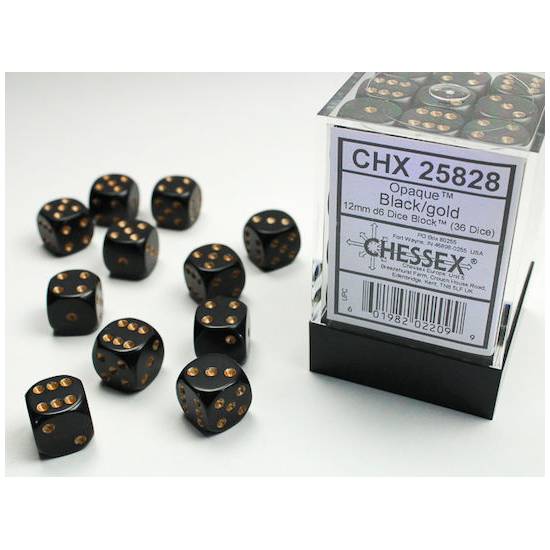 Chessex! D6 12mm σετ ζάρια σε block – Black & Gold
