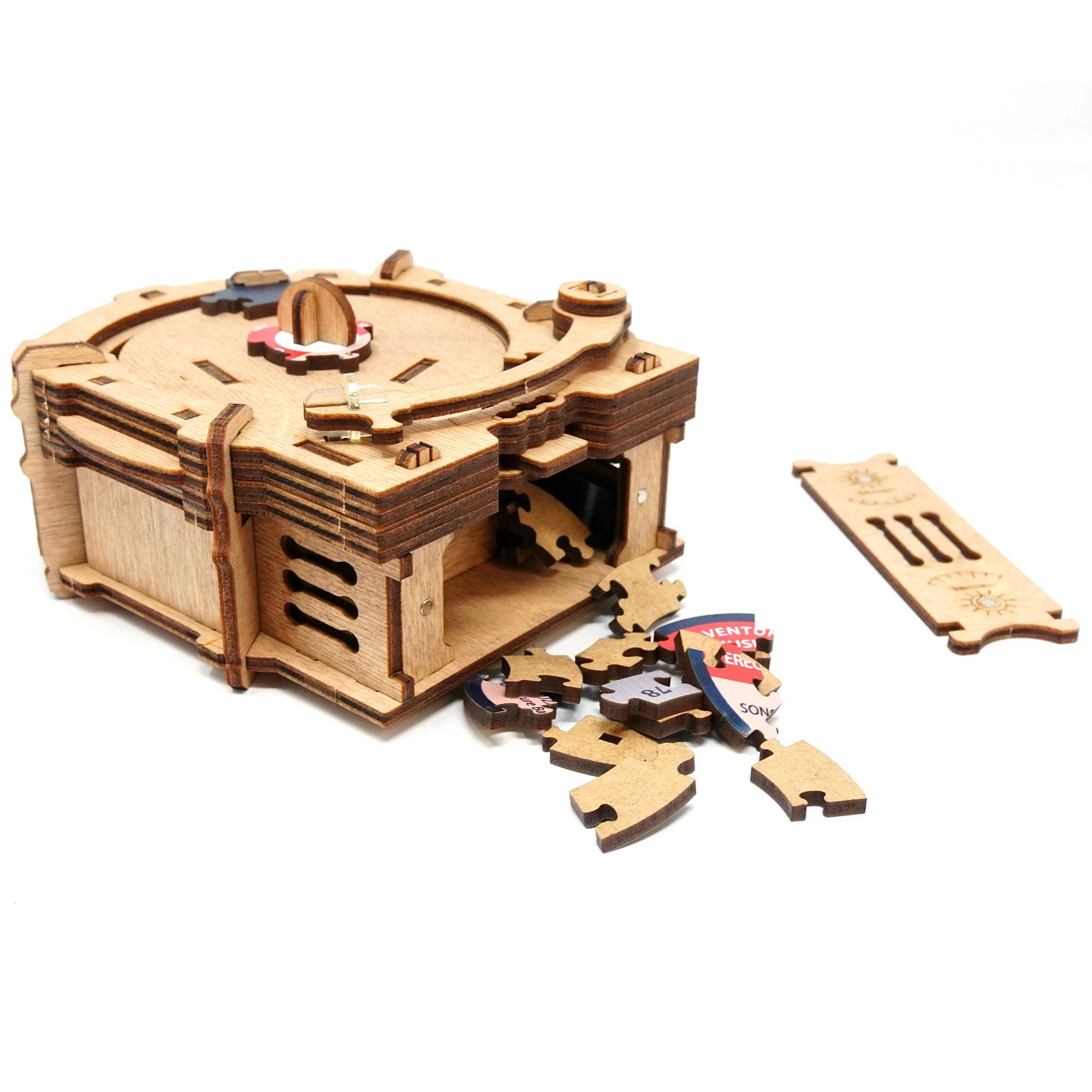 Το CluePuzzle – Record Player δεν είναι ένα απλό κουτί δώρου, αλλά ένας μοναδικός ξύλινος γρίφος που πρέπει να λύσεις για να το ανοίξεις! Εμπνευσμένο από το κλασικό πικάπ, αυτό το χειροποίητο παζλ προσφέρει μια διασκεδαστική και πρωτότυπη εμπειρία.