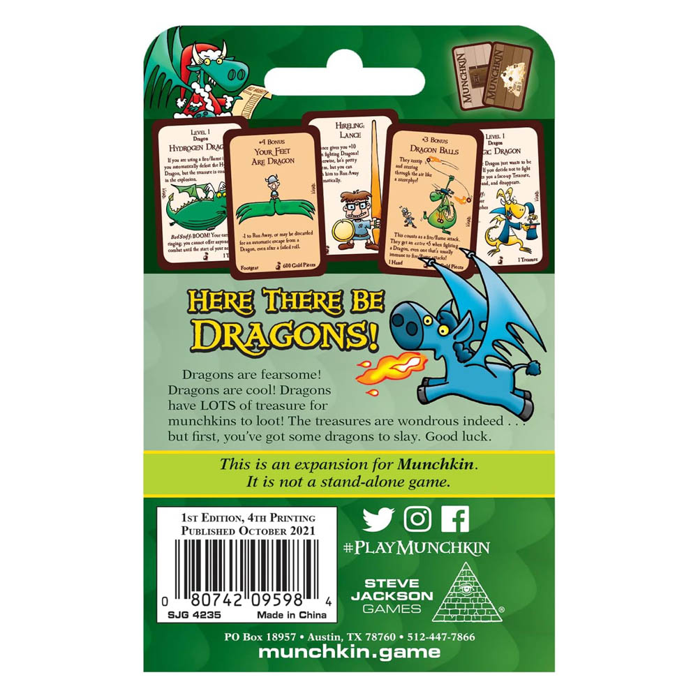 Οι δράκοι είναι φοβεροί! Οι δράκοι είναι ψυχροί! Οι δράκοι έχουν ΠΟΛΥ θησαυρό για τους munchkins να λεηλατήσουν! 15 ολοκαίνουργιες κάρτες για να προσθέσετε δράκους στο Munchkin παιχνίδι σας.