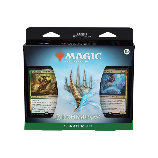Το κάθε Bloomburroow Starter Kit περιέχει 2 έτοιμα decks των 60 καρτών και 2 κουτιά αποθήκευσης, ένα για το κάθε deck. Το Starter Kit είναι ιδανικό για νέους παίχτες ή για παίκτες που επιθυμούν μεγαλύτερη ποικιλία καρτών.