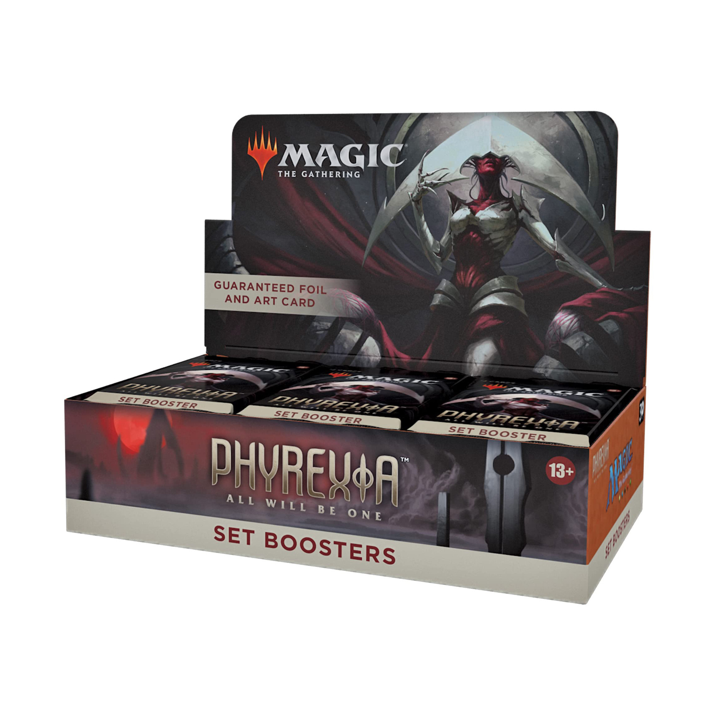 Το κάθε Phyrexia: All Will Be One Set Booster περιέχει 12 κάρτες και μία art card και πωλείται σε displays των 30. Κάθε display περιλαμβάνει 30 booster packs του συγκεκριμένου σετ, κάνοντας το ιδανικό για παίκτες που επιθυμούν μεγαλύτερη ποικιλία καρτών.