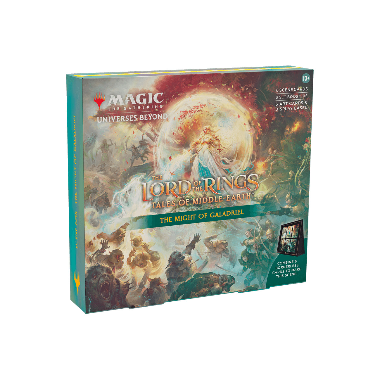 Το κάθε The Lord of The Rings: Tales of Middle- Earth Scene Box – The Might of Galadriel περιέχει 6 scene cards, 6 art cards, 3 set boosters και 1 display Easer, κάνοντας το ιδανικό για παίκτες που επιθυμούν μεγαλύτερη ποικιλία καρτών.